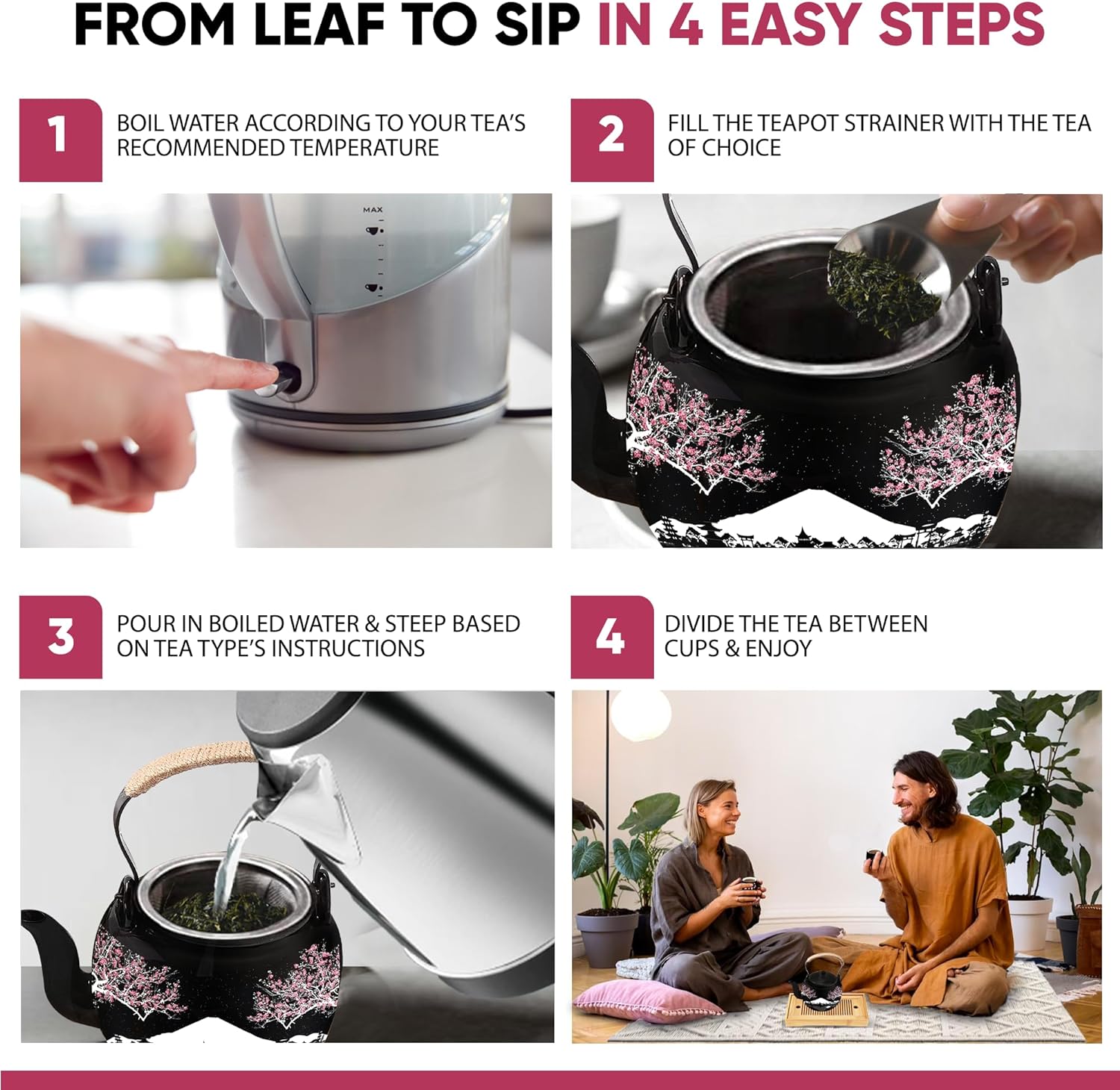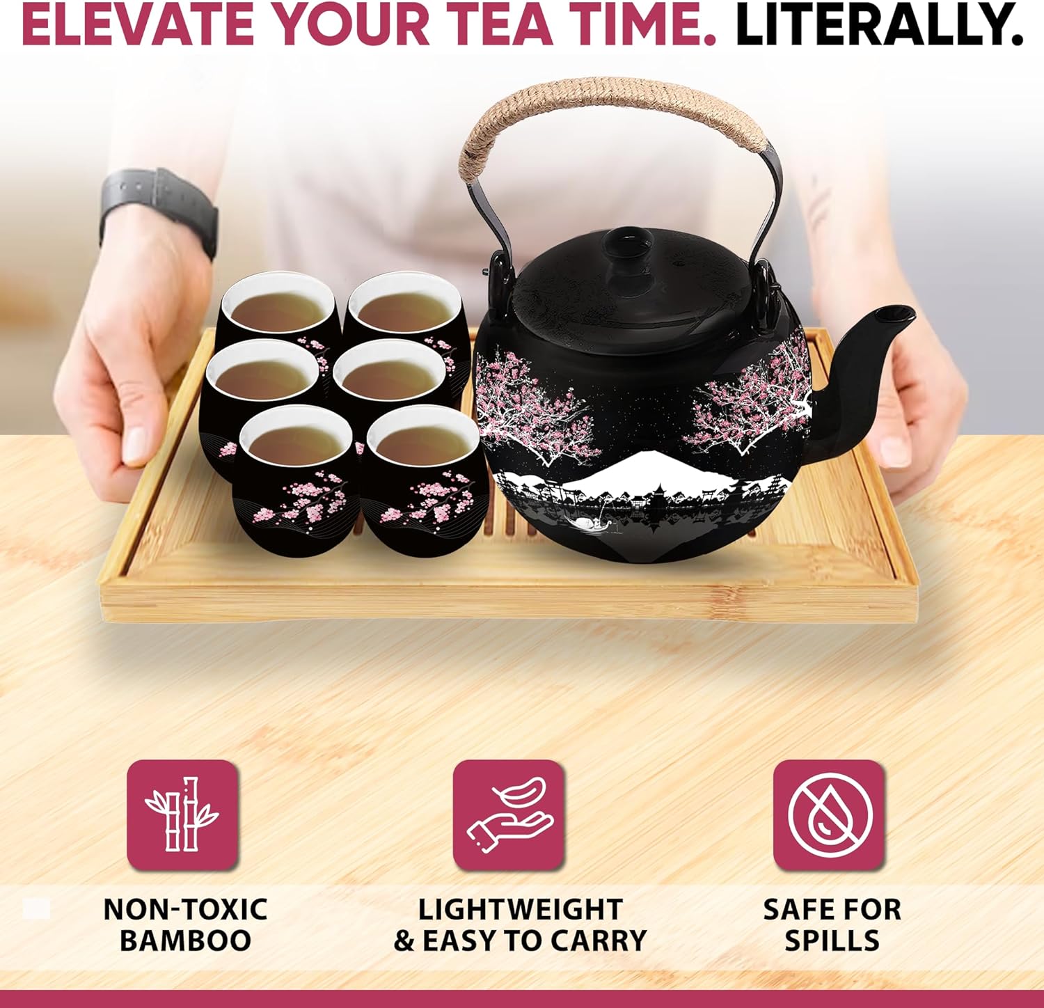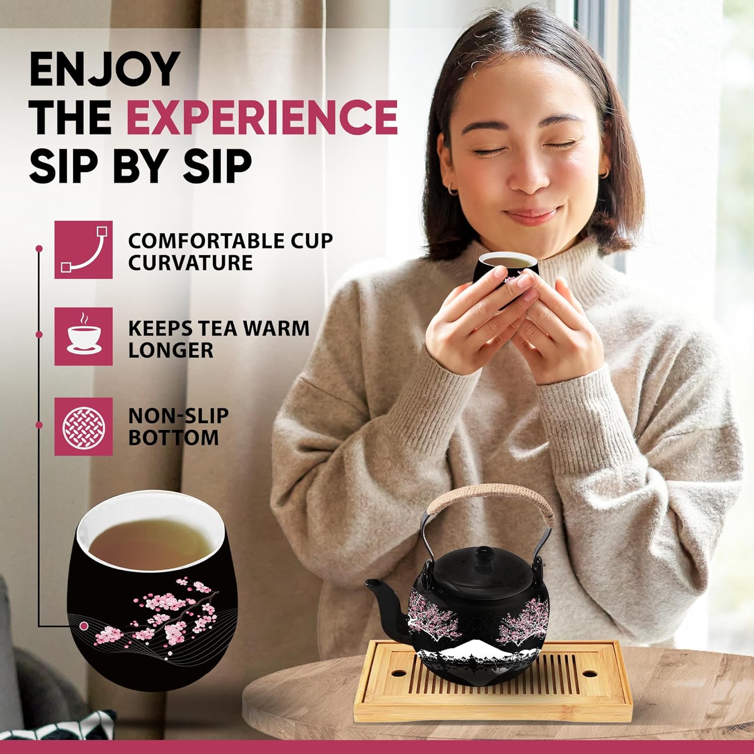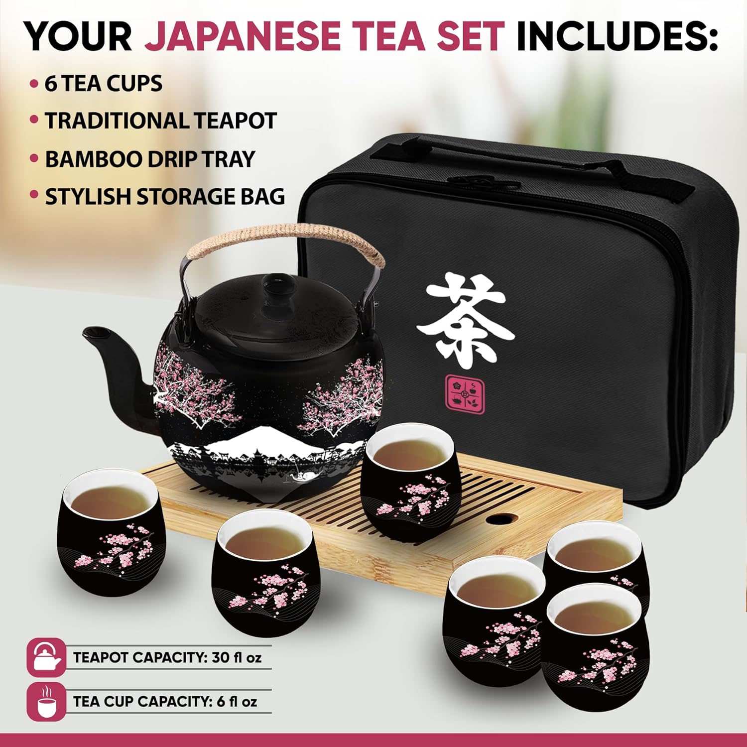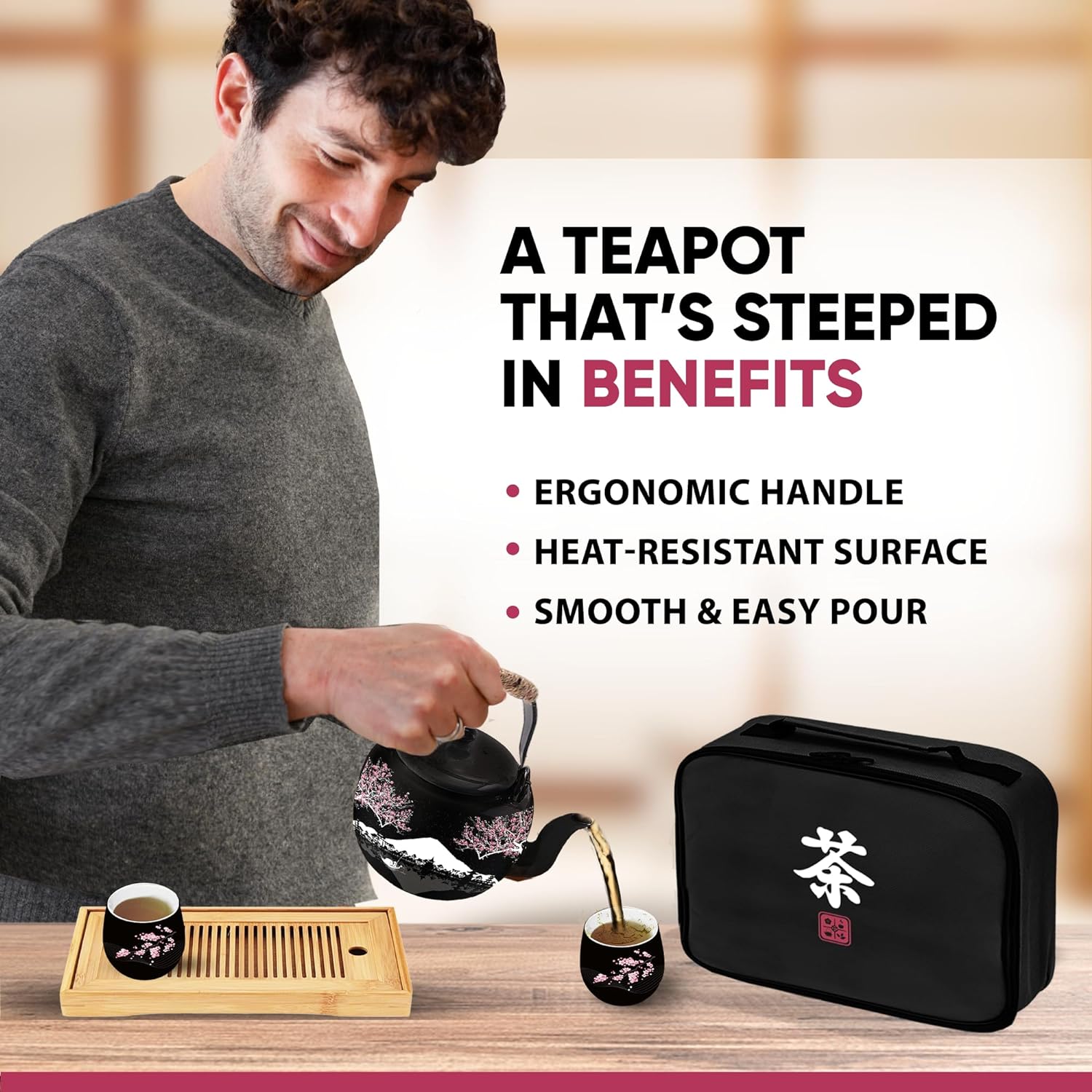 This tea set is gorgeous and I love the sakura petal design. We brewed some jasmine tea in it and it did very well. I also really love the included tea tray and the extremely sturdy soft shell case. Each cup and the teapot has its own cutout in the foam inside, so they feel very secure. This would make a great gift for someone as a starter set.